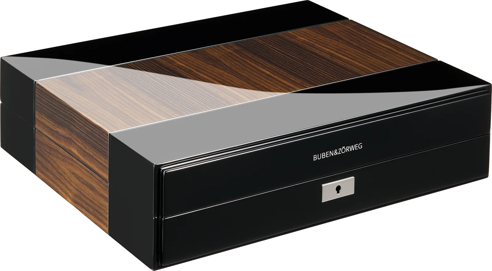 Mit Beschlägen aus Edelstahl, schwarzem Hochglanzlack in Kombination mit ausgesuchten Hölzern oder Karbonfaser bietet die VANTAGE-Kollektion eine diskrete und elegante Möglichkeit, wertvolle Zeitmesser zusammen mit kostbaren Manschettenknöpfen, Schmuck und Stiftsammlungen aufzubewahren.1.980 €
